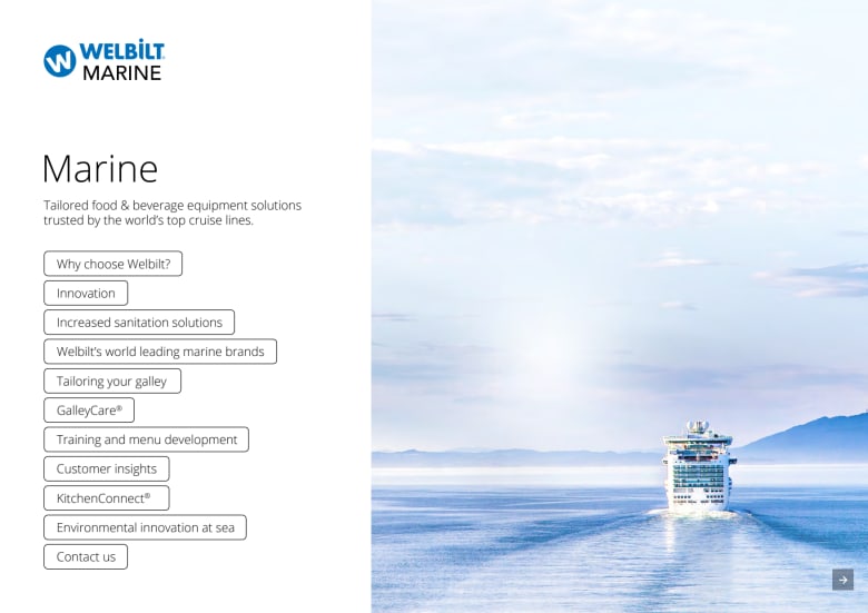 Welbilt, Inc., an Ali Group company, provides industry-leading equipment and solutions designed and specified for foodservice within the Marine industry. Innovative products and solutions powered by Welbilt’s deep knowledge, operator insights and culinary expertise. Welbilt’s portfolio of award-winning brands offering Marineconfigured products include Ambach®, Bongard, Carpigiani, Cleveland®, Convotherm®, Delfield®, Egro, Frymaster®, Garland®, Inducs®, Lincoln®, Merco®, Merrychef®, Multiplex®, Wexiodisk, WMAXX™, Rancilio, Rancilio Specialty, Servend®, Scotsman®, V AIR, Supported by service brands: GalleyCare®, aftermarket service; FitKitchen®, kitchen systems; and KitchenConnect®, cloud-based open platform. Headquartered in the Tampa Bay region of Florida, operating manufacturing facilities throughout Europe, the Middle East, Africa, North America, South America, and Asia Pacific, and also providing spare parts distribution from two convenient bases, one in Germany and one in Florida, US, serving cruise lines within 48 hours.