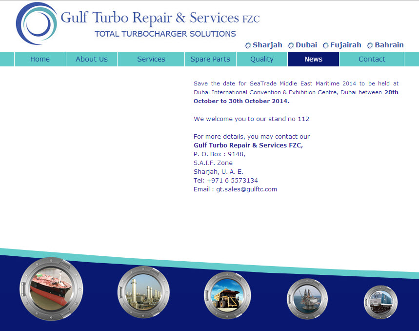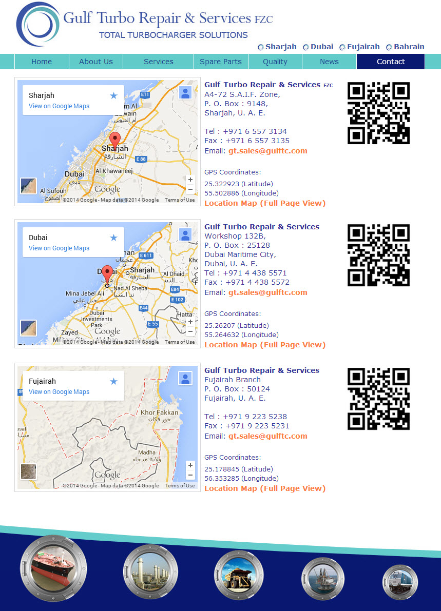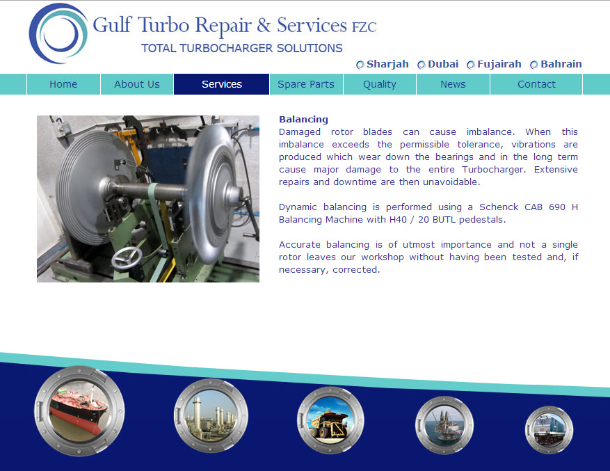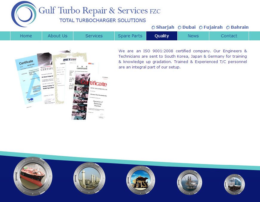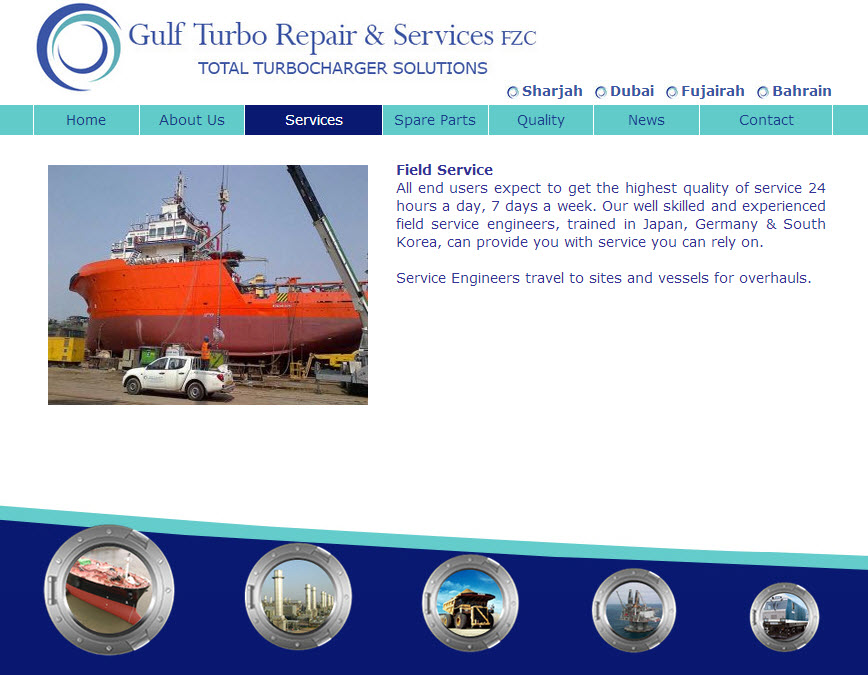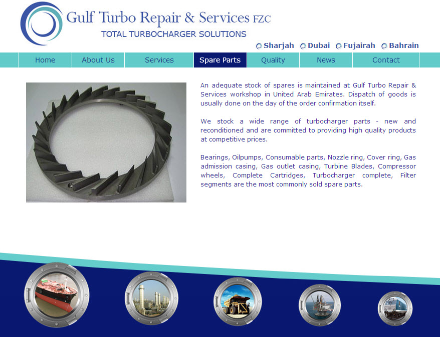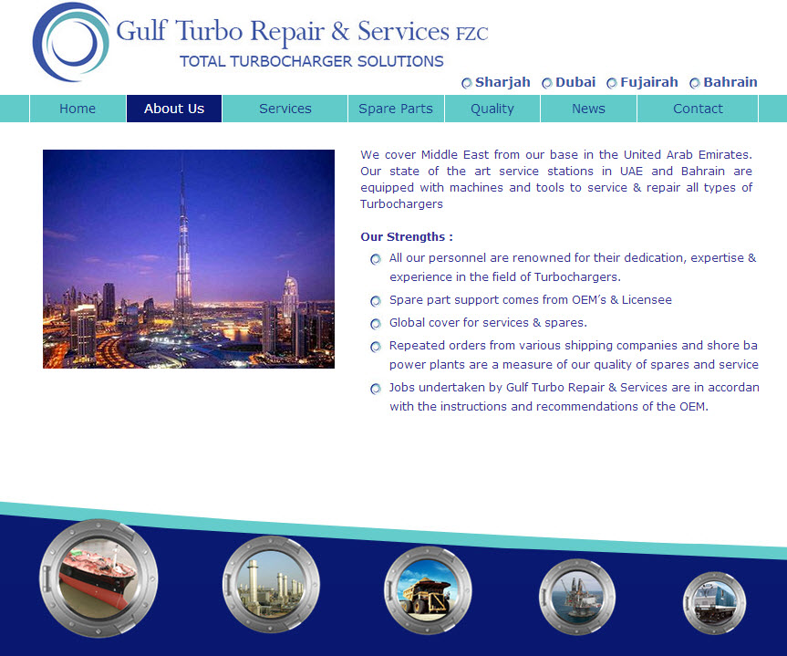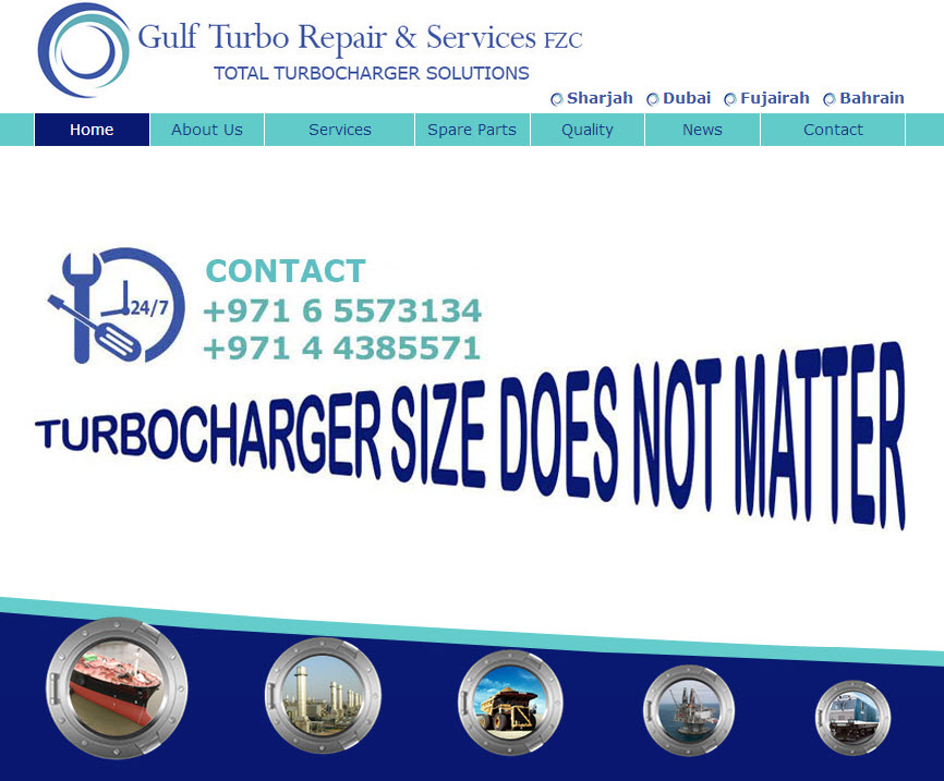 We cover Middle East from our base in U.A.E. Our state of art service station is equipped with machines and tools to service & repair ALL makes, models, and types of Turbochargers. Our Strengths: 1. Our Management and Engineers comprise of personnel who formerly worked with the Turbocharger Makers. 2. We are an ISO certified company and the Authorized Repair Agent for MHI & Supplier of Original Spare Parts for MET Turbochargers. 3. Appointed as the Cooperative Repair Shop & Supplier of Original Spare Parts for Turbochargers manufactured by Mitsui Engineering & Shipping Co. Ltd. 4. Gulf Turbo WLL is authorized to carry out inspections, overhauls, supply of Original Spare Parts for KBB Turbochargers 5. Our Qualified and Experienced Turbocharger personnel are trained in Germany, South Korea and Japan. 6. Dynamic Balancing, Shaft end repairs, Reblading, Assembly of Bearing Units, Reconditioning of Oil pumps are some of the jobs undertaken. 7. We stock a wide range of Turbocharger parts ( New and Reconditioned ) . 8. Committed to providing high quality products at competitive prices with same day delivery if parts are in stock. 9. Global cover for services & spares 10. Repeated orders from various shipping companies & shore based power plants are a measure of our quality of spares / services 11. All jobs carried out by Gulf Turbo are in accordance with the instructions and recommendations of the Makers. 12.Our services and Spare parts are covered with warranty