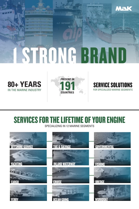 Caterpillar Motoren, with headquarters in Kiel, Germany, offers premier parts and services for a wide range of marine, oil & gas and electric power applications. With decades of experience designing medium speed engines (MSE) parts and service solutions, our products set the standard for quality, performance, and reliability. Our trained and certified technicians and service engineers offer a variety of solutions for our customers with their expertise. Caterpillar Motoren is committed to providing services for the entire lifetime of its customers’ engines, bringing them operational success. As part of our commitment to performance, we continuously strive to be the leading provider of total lifecycle value, delivering sustainable products, engines, components, services and solutions of exceptional quality and performance, unsurpassed reliability, and unparalleled support. Sustainability is very important to us, which is why we promote upgrades for engines in operation together with our dealer network. We also support customers in achieving their climate-related goals so that they can improve their environmental footprint. Our global dealer network supports you anywhere – worldwide. To find your local dealer, please visit https://www.cat.com/en_US/by-industry/marine/mak-dealer-locator.html