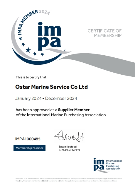 OSTAR offers all ship stores, provision, bonded stores, spare parts at ALL ports China, for 20+ years. OUR SHIPSERV ACCOUNT: 210785. OSTAR PRODUCTS: Technical stores, Deck, Engine, Cabin, Chemical, Electrical, Medicine, Safety & Rescue equipment, Chart & Maps, Provision & bond stores, spare parts forwarding and customs clearance, etc... OSTAR CLASSIFICATION: Ship Stores: Each item is categorized into 4 Grade, to ensures that Ostar caters to your requirements and standards. Provision: Ostar Fresh Technique ensures the utmost freshness of provisions. Each item is carefully selected and separately handled, to maintain its quality throughout delivery and storage onboard. OSTAR has branches in QINGDAO, SHANGHAI, ZHOUSHAN, GUANGZHOU. We are IMPA, ISSA, DNV membership.