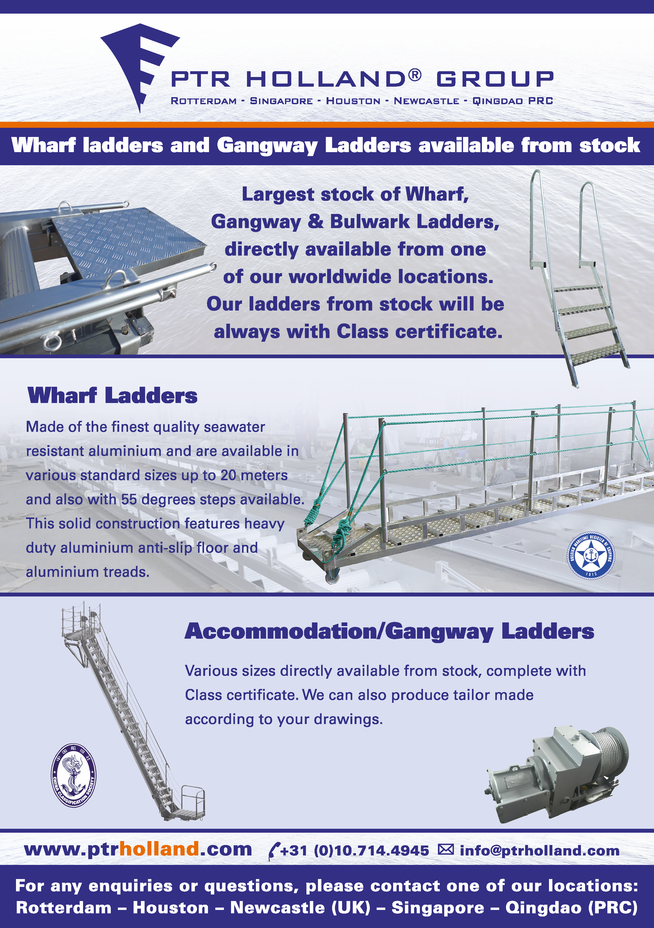 Pilot ladders MED ISO799:2004 (ISO799-1:2019) Embarkation ladders MED ISO5489:2024 Ropeladders, taylor made. Gangways/accomadation ladders taylor made. Suction pad, for ships gangway acc solas reg. Magnets for Pilot ladder acc Solas reg. BILLY PUGH Europe distri center ANTI PIRACY PRODUCTS** ANTI PIRACY PRODUCTS, LARGE STOCK RAZOR WIRE, BULLET PROOF VESTS, COMBAT HELMETS,BARBED WIRE,ETC. BULLET PROOF WINDOW FOIL Wharf ladders, 2 - 20 meters ON STOCK. Bulwark ladders, Allways 50 pieces on stock. All kinds of safety products. Painting rafts and pontoons. Cargo nets. AIR VENT HEADS. Hatch cover tapes. Anti splashing tape. EXOWRAP. Scaffolding towers. RAZOR WIRE. Bullet proof body armour Personal transfer baskets. Billy Pugh for safe personal transfer. Big stock, fast delivery world wide.