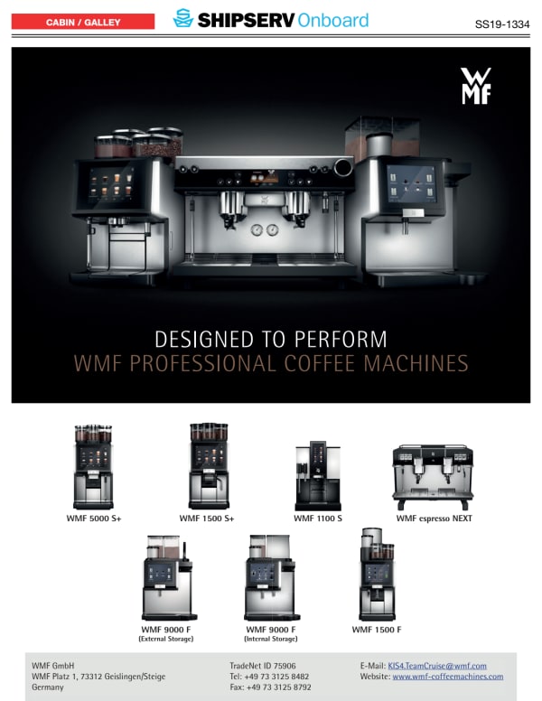 DESIGNED TO PERFORM: Made in Germany since 1927. WMF is the global market leader in fully automatic professional coffee machines. As a highly trusted brand with a long history of success, our mission is clear: to offer a seamless premium experience, by combining coffee excellence, reliable solutions and a uniquely comprehensive service. “Designed to Perform” is our promise that every WMF professional coffee machine is conceived to provide outstanding technical performance, ensuring the results and the reliability our customers desire. Our aim is to support your coffee business in every way you need. That’s why our product portfolio caters for every requirement, from fully automatic coffee specialities machines to fully automatic filter coffee makers and even the inventive automated espresso machine. www.wmf-coffeemachines.com